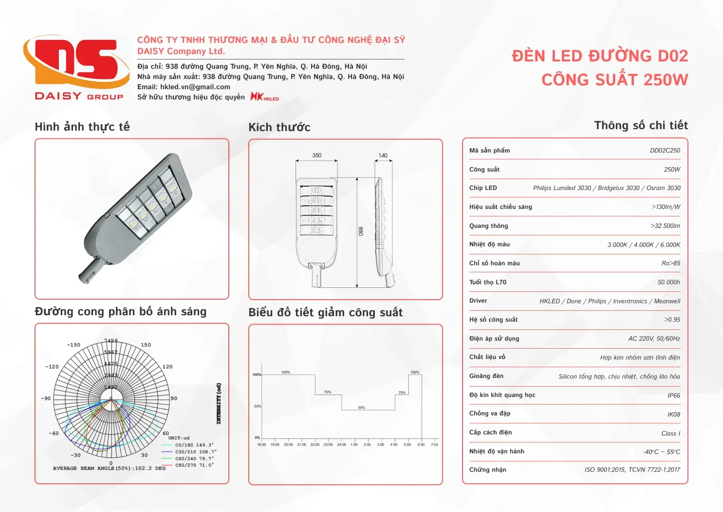 Đèn LED đường phố D02 Module COB – Công suất 250W