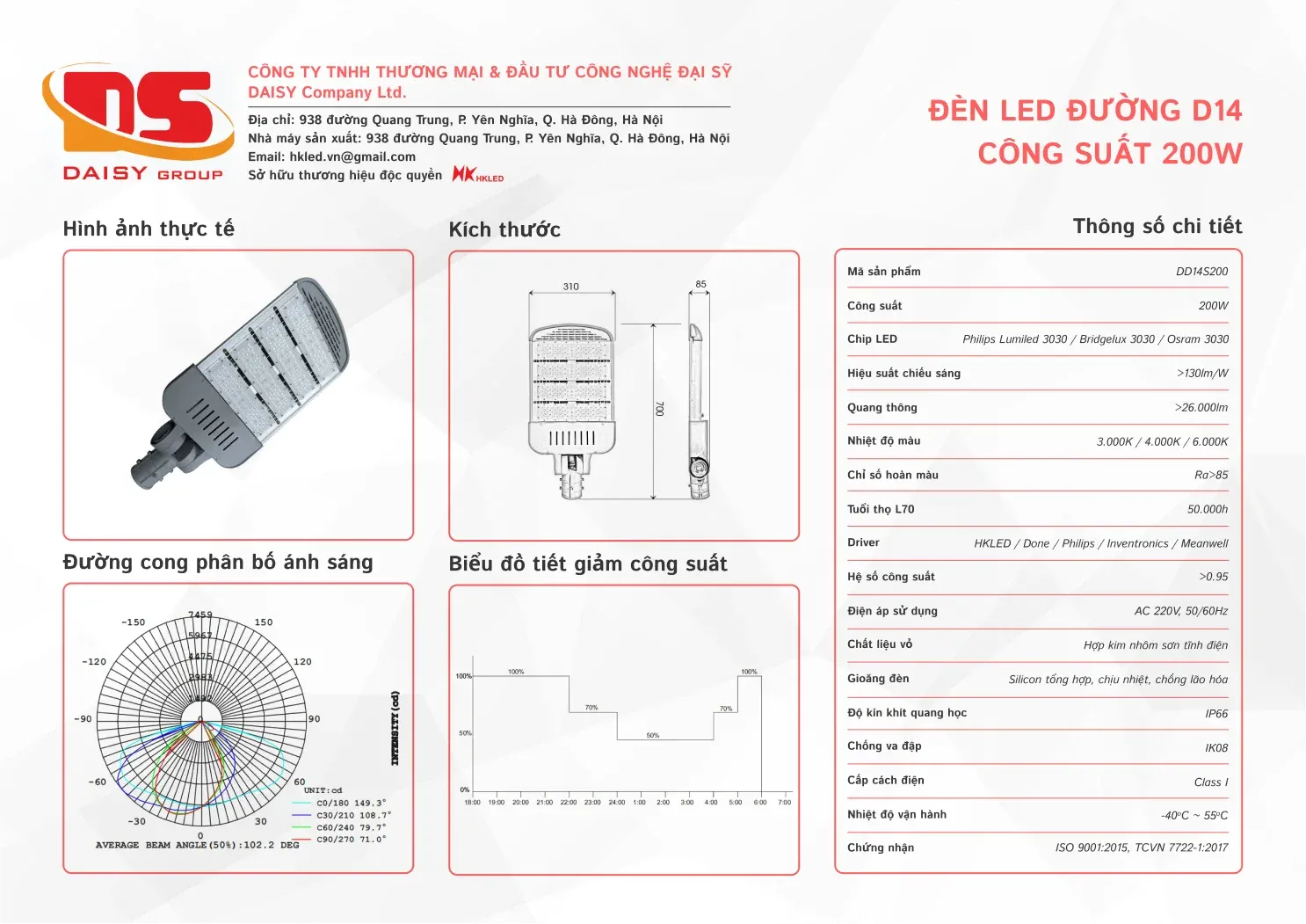 Đèn LED đường phố D14 chip LED SMD – Công suất 200W