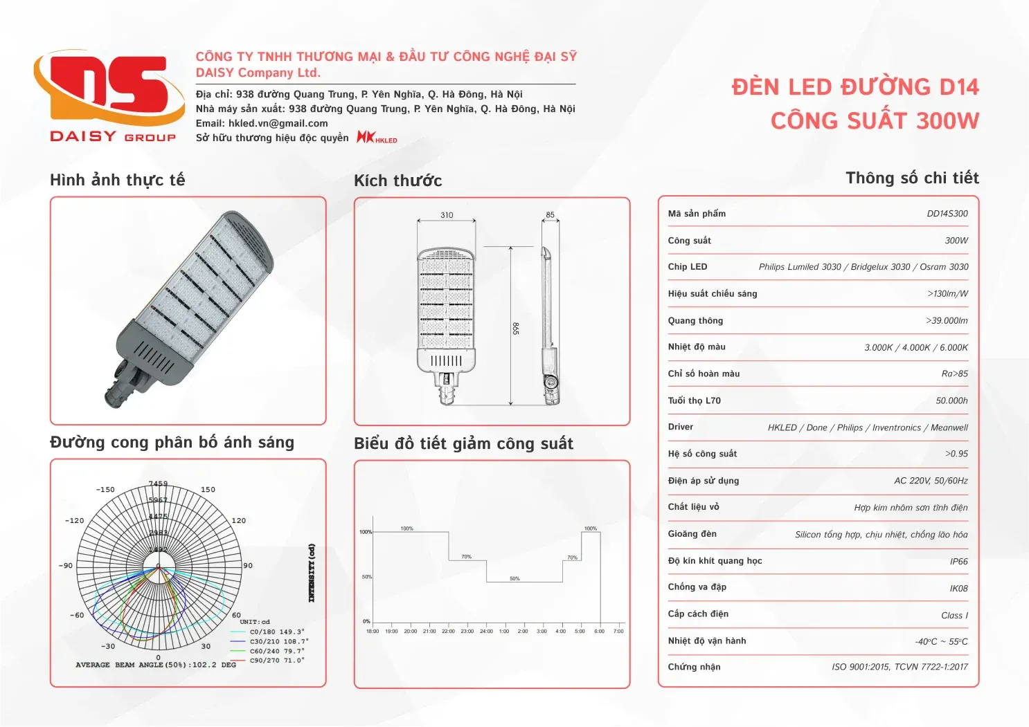 • Tuổi thọ L70: 50.000h