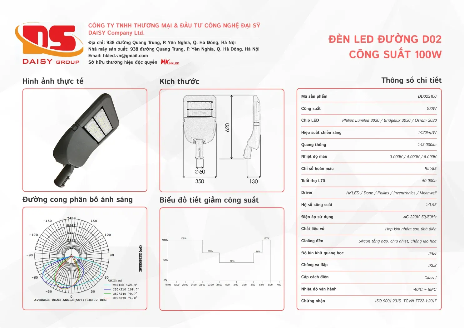 Đèn LED đường phố D02 Module SMD – Công suất 100W