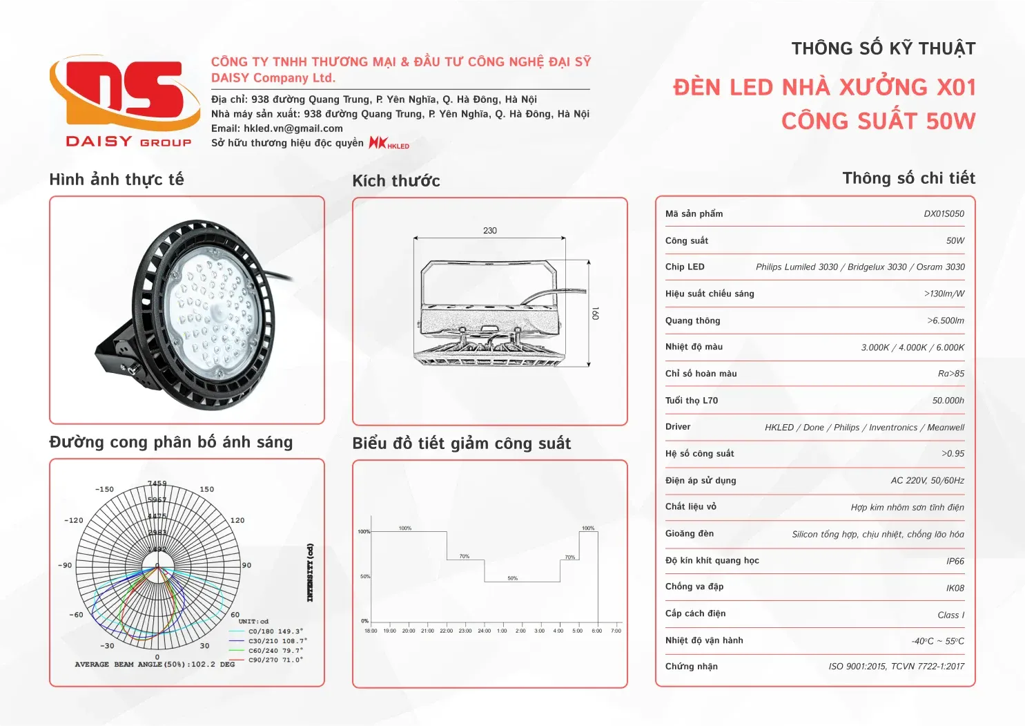 Đèn nhà xưởng UFO X01 Nguồn hộp – Công suất 50W