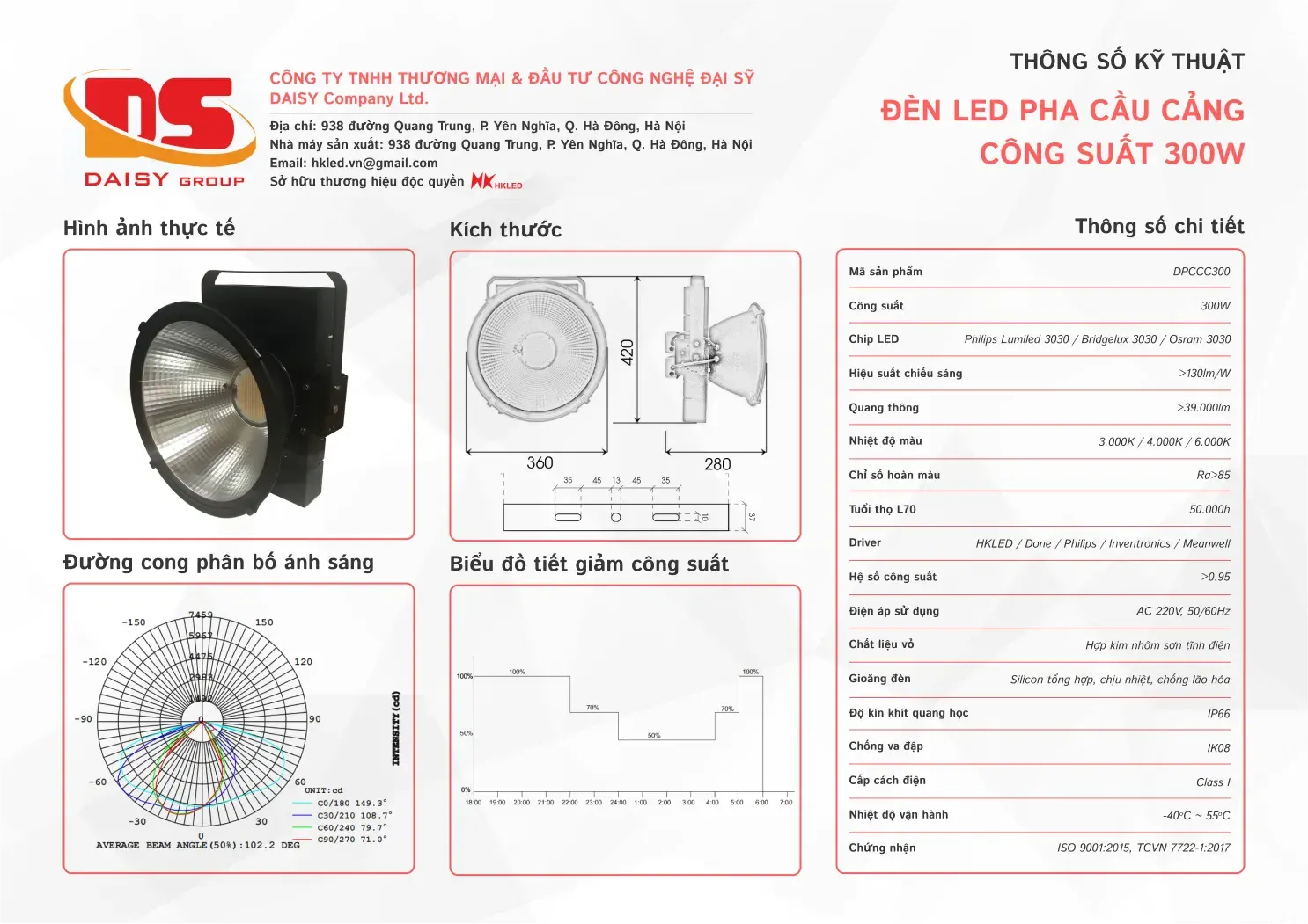 • Hiệu suất chiếu sáng: 130lm/W