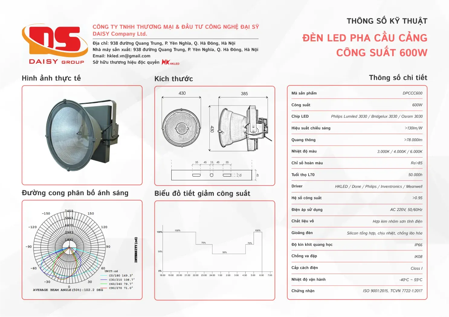 Đèn pha PCC chip LED SMD – Công suất 600W